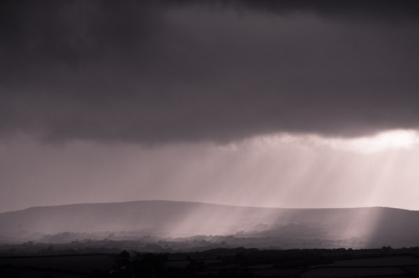As the rain cleared a few beams of sunlight came through the clouds and spotlighted some of the landscape. Unfortunately none of them hit Arthur’s Stone, which stayed in rather boring dull light. I knew when taking the images that conversion to black and white would have to be done.?The colours were so dull and fairly monochrome anyway, the images wouldn’t work in colour. I like to work with black and white film, plus all the processing and darkroom work. I think that it has a craft feel to it. Unfortunately with my darkroom in boxes at the moment, digital is my only real route to choose from. At least I can now reduce the number of camera bodies that I have to carry. In the days of film I had a couple of bodies loaded with slide and black and white film. This was no problem with the ?interchangeable backs with my medium format system. but with 35mm it was a bit of a pain.