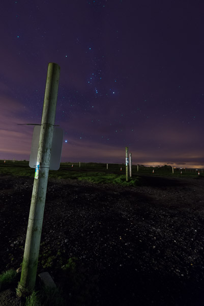 While packing up in the car park I couldn’t help noticing an amazing collection of starts visible in the sky. I unpacked the camera and set?it back on the tripod. As it was already dark, focusing was a problem, so I used my head torch to allow the camera to focus on the poles in the car park. Although I think my exposure is slightly out I’m still pleased with the feel of the image. My attempts to photograph the bay were spoilt by a strong wind that had picked up and moving the camera during the long exposure. I’ll just have to try again another time.