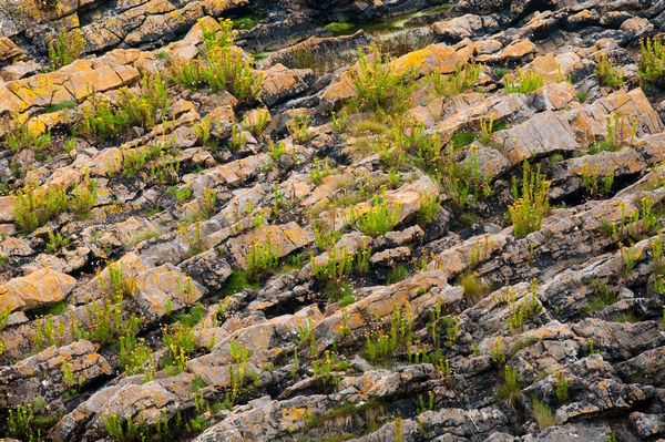 After leaving Brandy Cove, I walked along the coastal path towards Caswell Bay. I was hoping to get a picture of the cliffs beyond Brandy cove, but the light wasn’t right for what I had visualised. Looking down from the path and saw this pattern of rocks and subtly back lit plants. The diagonals of the rock layers and the yellow-green colours of the plants helps create a dynamic that makes it worth photographing. There is some resemblance of order in the image given by the rock structure, but the plants soften this with a fairly random pattern. On a technical note, a?polariser once again removed any reflections and saturated the colours.