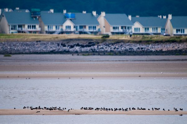 I got to Salthouse point well before the tide came in as it is always best to allow the tide to push the birds closer to you than havingto try and get closer to them yourself. I took the above image while I was waiting for the tide to come in. It shows the new housing development in Machynys, where once there was marsh and grassland that the birds could roost on when the tide was in. I was trying to get an image to represent the pressures on the natural world than man is constantly placing on it. One of the most significant ways man could help nature and ensure a better future for itself would be through population control. This is the least talked about environmental option and is probably the hardest to do, but it would have an impact in all areas that are of concern at the moment in the environment e.g. climate change, water usage, food production, house building etc.